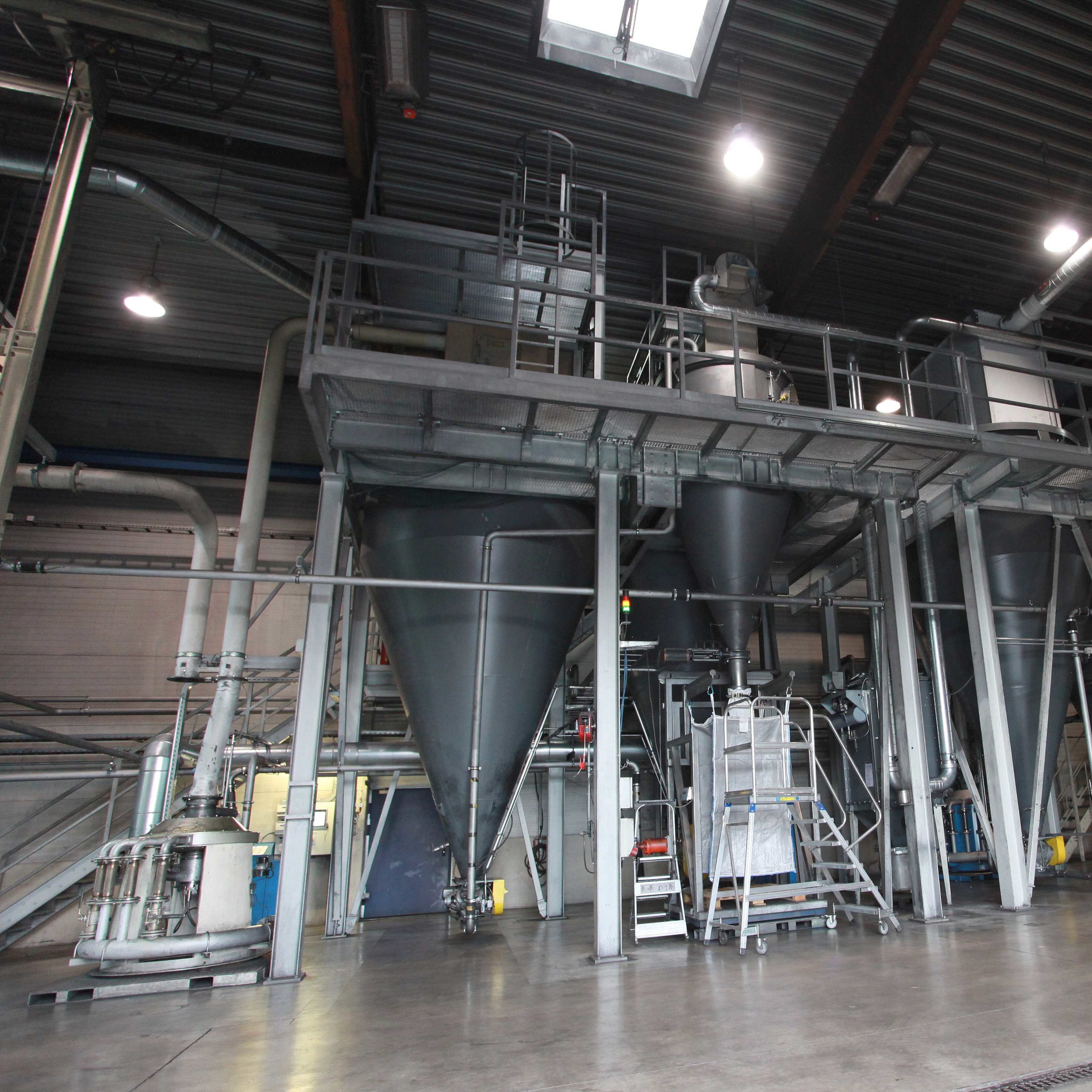 Die eigenentwickelten Maschinen, wie die Spiralstrahlmühlen oder der Feinstsichter werden einerseits in kundenspezifischen Lösungen im Bereich mikronisierter Produkte und andererseits in der eigenen Lohnmahlanlage eingesetzt.